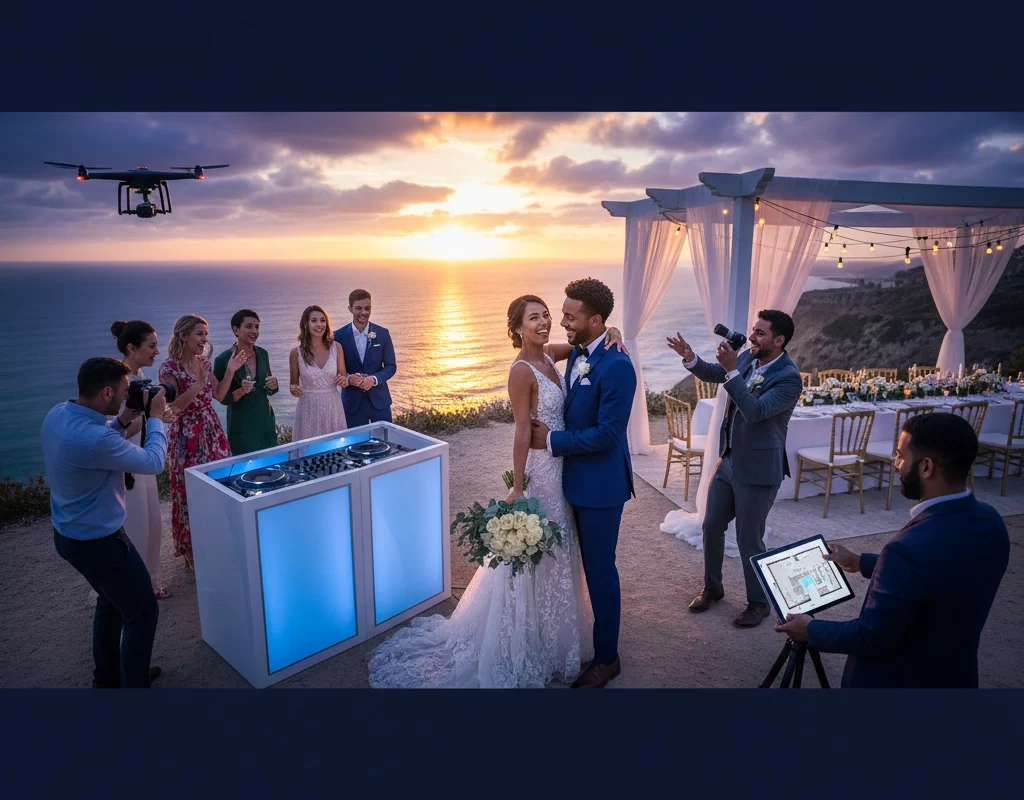 We work with couples to coordinate photography timelines, ensuring you capture those golden hour shots while maximizing the impact of your evening lighting. Many of our most dramatic photos happen during this transition time when natural and artificial lighting blend together perfectly.